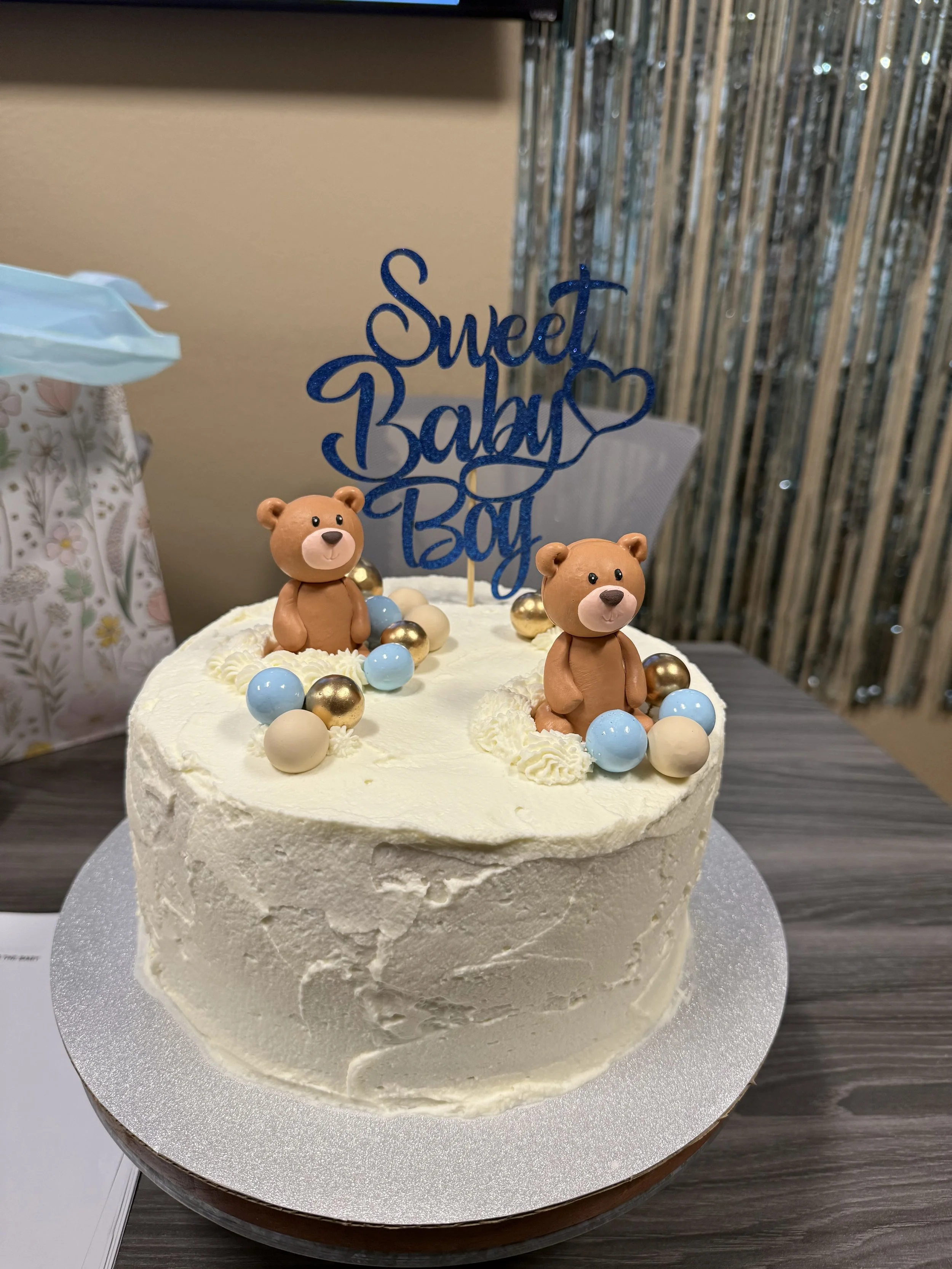 Boy Bear Baby Shower Custom 8” Round Cake